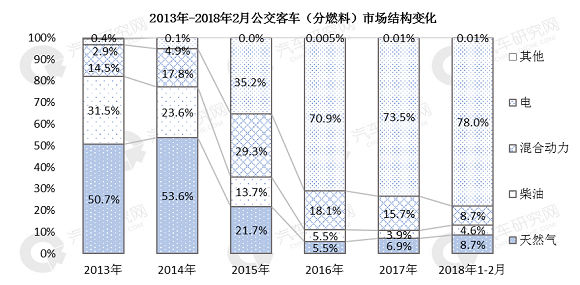 近几年来,公交客车市场高速发展,自2014年开始销量逐年在增加,2018年1-2月同比增速达到81.4%,累计销售7672辆。