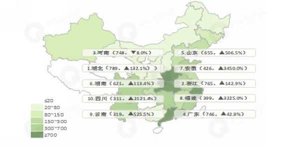 2018年1-2月前十省份中有九个省份销量实现正增长,其中四川、福建和安徽地区增幅较大;仅河南出现负增长,降幅为8.0%。