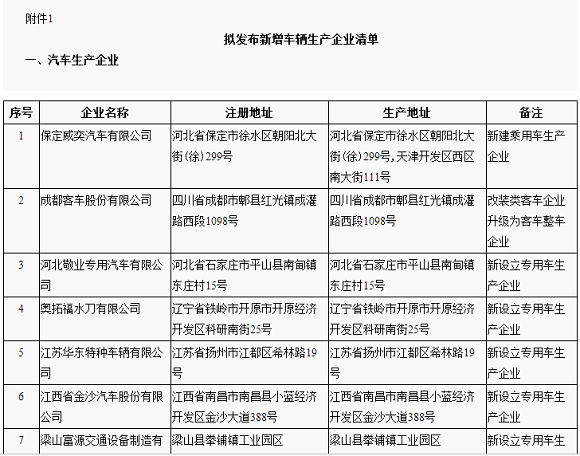《道路机动车辆生产企业及产品公告》发布的新增车辆生