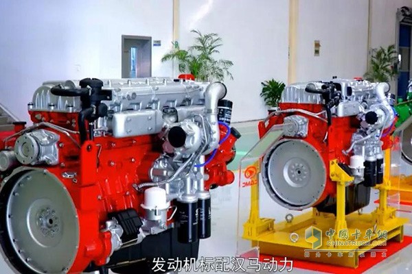 发动机标配汉马动力,该发动机低转速、大扭矩,爆发力强,完全适应各种工况需求,主要零部件均选用博世、皆可博、霍尼韦尔、蒂森克虏伯等国际顶尖品牌,满足国五、国六排放标准。