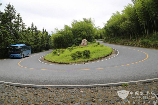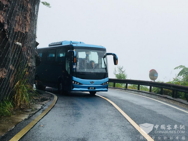 在此次山路试运行中,C7满载沙袋,往返新国线黄山风景区与黄山北大门,途经汤川路、103省道、036县道等。此路段有大段坡道及连续弯道,最大坡度15度以上,且需要经过多个急弯,最大弯道超过280度,每个弯道仅有一百米左右的距离,可谓险峻。此外,恰逢雨天,山路较为湿滑,满载情况下上下坡对车辆的抓地力和制动性能都是严峻的考验。