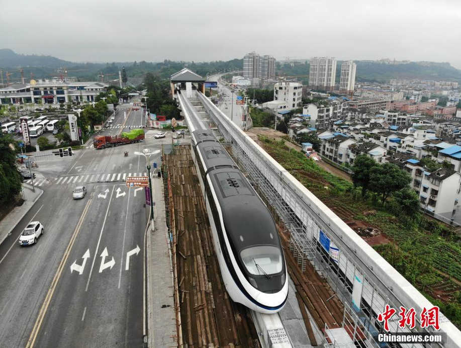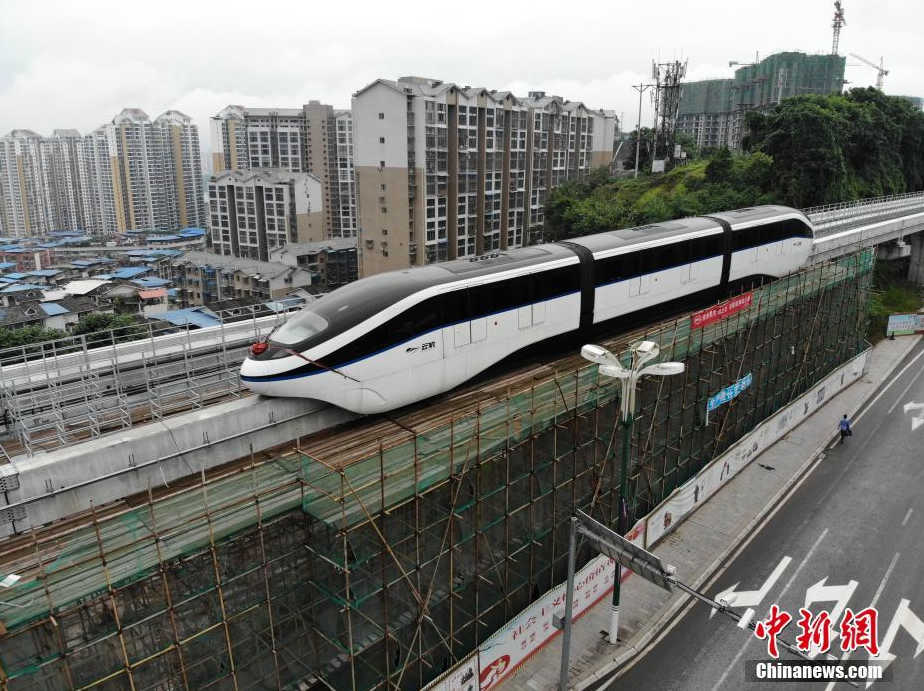 四川建首条云轨线 车辆已上轨调试