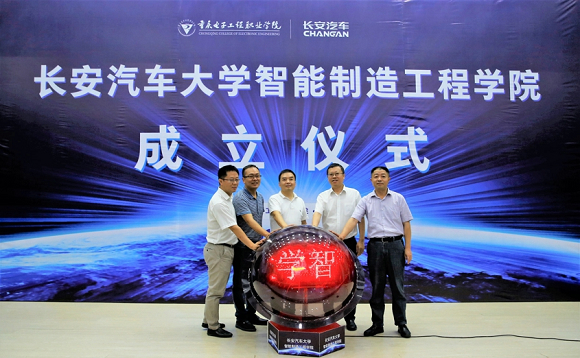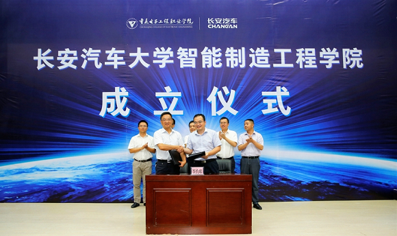 2018年6月28日,长安汽车大学智能制造工程学院成立仪式于重庆电子工程职业学院隆重举办。来自重庆市教委、重庆市科委、重庆市人社局、重庆电子工程职业院、长安汽车等单位嘉宾,大国工匠代表、学生代表等参与并见证了长安汽车大学这一创新举措。