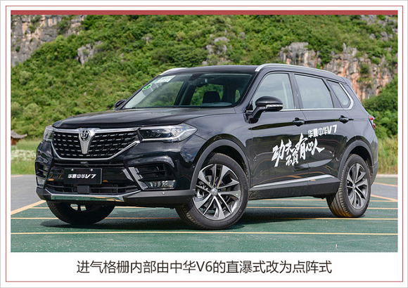 chuffart)带头优化整改的,整个前脸的设计灵感来源于中国的“尊”,“中”字型进气格栅的内部由中华V6的直瀑式改为点阵式。新车的前后大灯组以及雾灯均为LED光源,入门版车型配备18英寸轮圈,其余车型为19英寸。