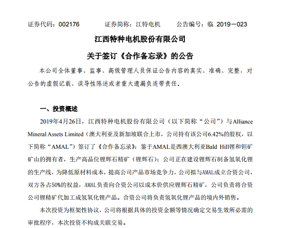 在最新公告中,江特电机介绍了公司碳酸锂、新能源汽车、机电产业三大业务的进展。