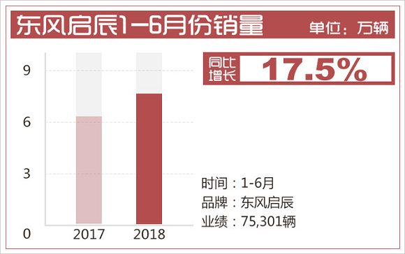 2017年,东风启辰累计销量突破14万台,刷新启辰品牌历史销量纪录。进入2018年,东风启辰将实现“新跨越”,整体销量也延续了此前的良好增长势头。网通社从东风启辰官方获悉,企业今年1-6月累计销量达75,301辆,同比增长17.5%。此外,东风启辰在轿车与SUV方面实现了均衡发展,其中轿车1-6月销量为35,933辆;SUV车型为36,611辆。