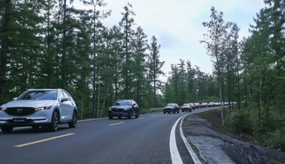 “冲破双子塔”环节考验车辆的反应速度与转向精准性。双子座既矛盾又统一,跳脱的性格让他们随时可能做出与上一秒截然相反的决定。但即便是U型弯道也这丝毫难不倒采用了“创驰蓝天”车身的“魂动双子”,兼具了高刚性与轻量性,使得车身既轻巧又结实,搭配“GVC系统”,车辆过弯时拖泥带水的感受被降到最低程度,轻松完成弯道挑战。探自然奇境,领略“星”驰之美经历了酣畅淋漓的场地体验之后,驾驶者带着澎湃的驾驶热情踏上了长白山风景之旅。试驾全程超过三十公里,从鸳鸯湖畔出发,跨越松江河国家森林公园,直抵长白山麓。层峦叠嶂的山川与水光潋滟的湖泊让人不禁感叹大自然的鬼斧神工,“魂动双子”也以匠心雕琢的外观设计和超越同级的驾驶品质,成为驾驶者在旅途中最坚实的陪伴。一字队列的“魂动”车队仿佛天地间追逐自由的猎豹一般,以刚劲有力的姿态不断向前迈进,闪耀的“水晶魂动红”在日光的映射下愈发晶莹剔透,灵动的车身线条于运动中彰显出不凡气质,风景自成一派。