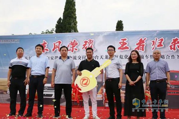 2018年6月29日,100台天龙启航危化品运输车交付暨战略合作签约仪式在安徽阜阳市成功举办。