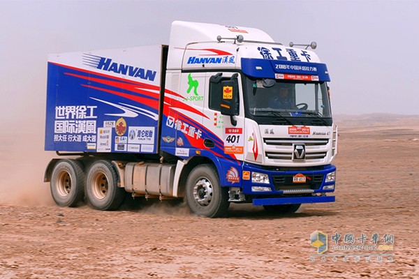 本次赛事,徐工重卡派出的骁勇悍将漢風G7,是一台500马力6×4牵引车车型,参加T4量产卡车组比赛。该车仅根据赛事组委会要求进行了防滚架、赛车座椅改装,以及加装制定的导航系统、紧急熄火装置,最大限度保留“原汁原味”,是一台真正贴近用户的普通量产车型。
