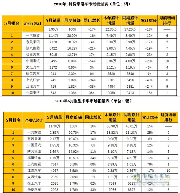 2018年1-5月销量数据显示,徐工牵引车销量已跃居行业前八强