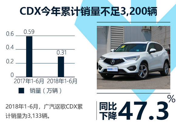 广汽讴歌销量下滑,主要源于旗下国产车型——CDX市场表现不佳。作为品牌的销量中坚力量,CDX进入到2018年以来,单月销量维持在500辆左右,峰值也仅有772辆。近年来SUV市场在国内异常火爆,但是CDX好像并没有感受到国内消费者的热情,有很大的因素在于其终端售价较高。
