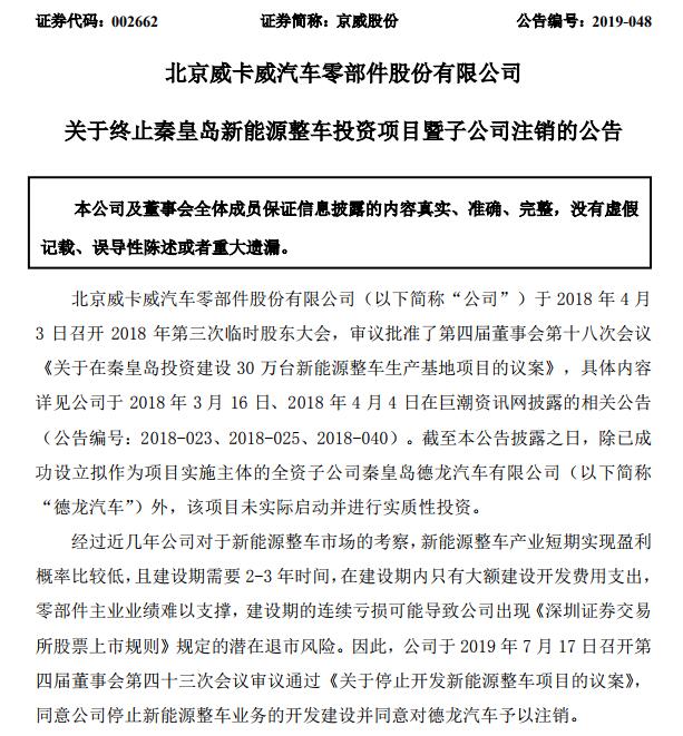 此外,今年4月京威股份以5.6亿元的价格将出售所持宁波京威27%股权、宁波正威18%合伙份额、宁波正道京威50%股权,正式退出宁波京威电池项目和宁波奉化清洁能源整车项目。