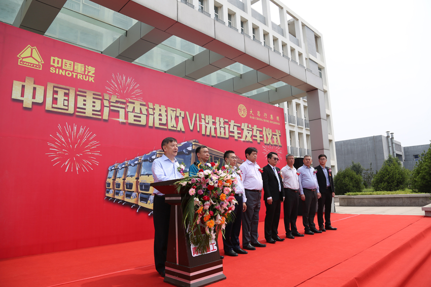 合德汽车有限公司高级经理马克在致辞中表示,本次发车仪式,象征着中国重汽集团与大昌行集团面对香港市场,精诚合作、再次出发。自2013年以来,已经有近千台中国重汽的车辆在香港挂牌,涵盖的范围包括载货车,牵引车,码头牵引车,随车吊,勾臂车,水泥搅拌车,自卸车等。这次市政环卫用车的中标,成功填补了我们在香港各类细分市场上最后的空白。