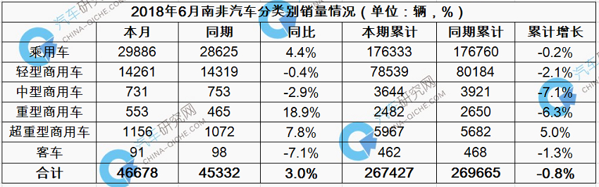 2018年上半年南非汽车累计销量增长2.2%