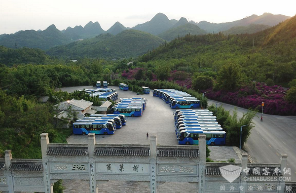 黄果树生态观光车有限公司总经理宗永东介绍,“为了方便旅客,黄果树景区早在10年前就开始使用景区观光车,如今景区已有84辆观光车,全部车辆均选自国内领军品牌宇通客车,这批车已不单承载运输工作,还是根据客流信息实现科学管理、调节客流的重要载体。这批车不仅动力足、安全性好,其中25辆车辆为一级踏步、双开车门,确保了客流量大时也可以实现迅速上下车。”