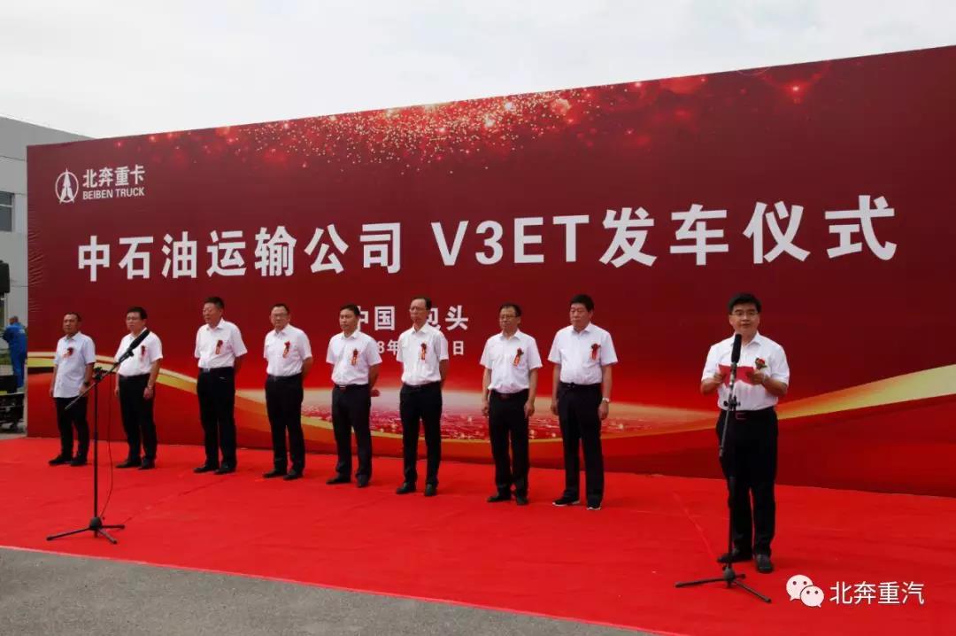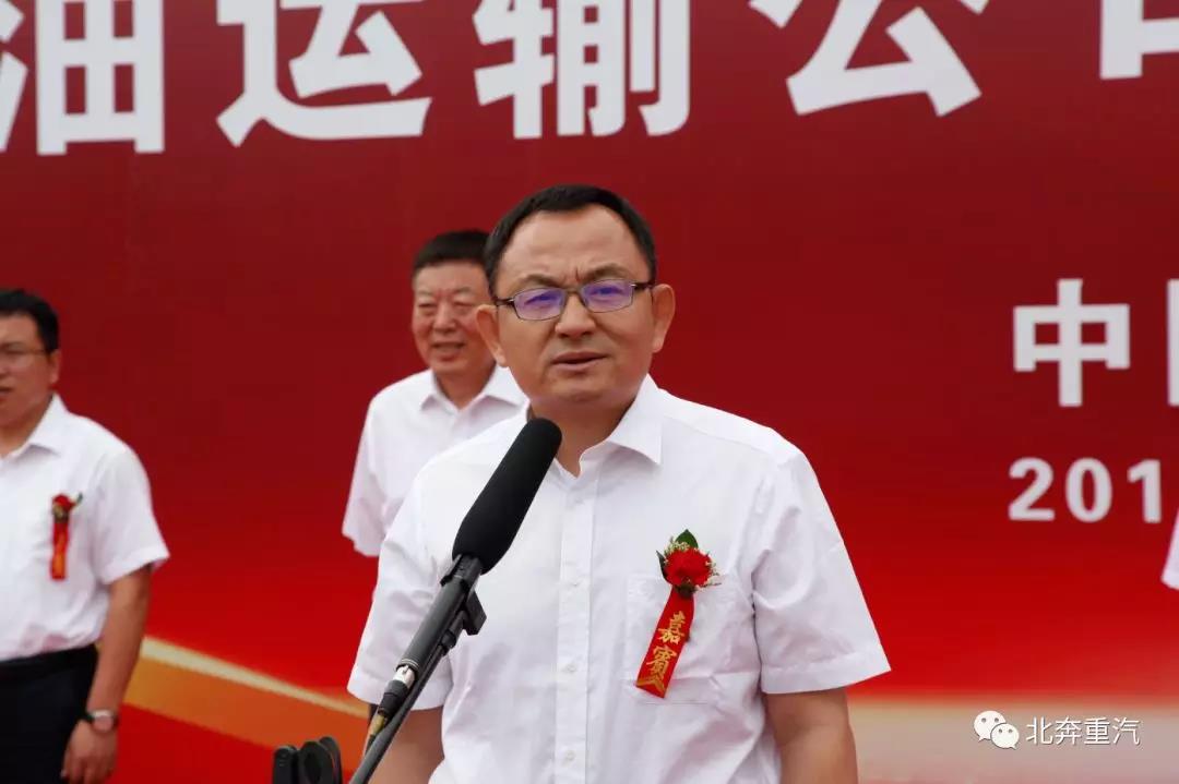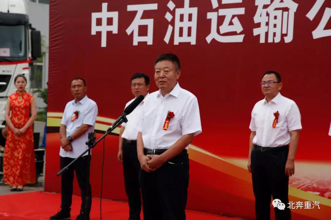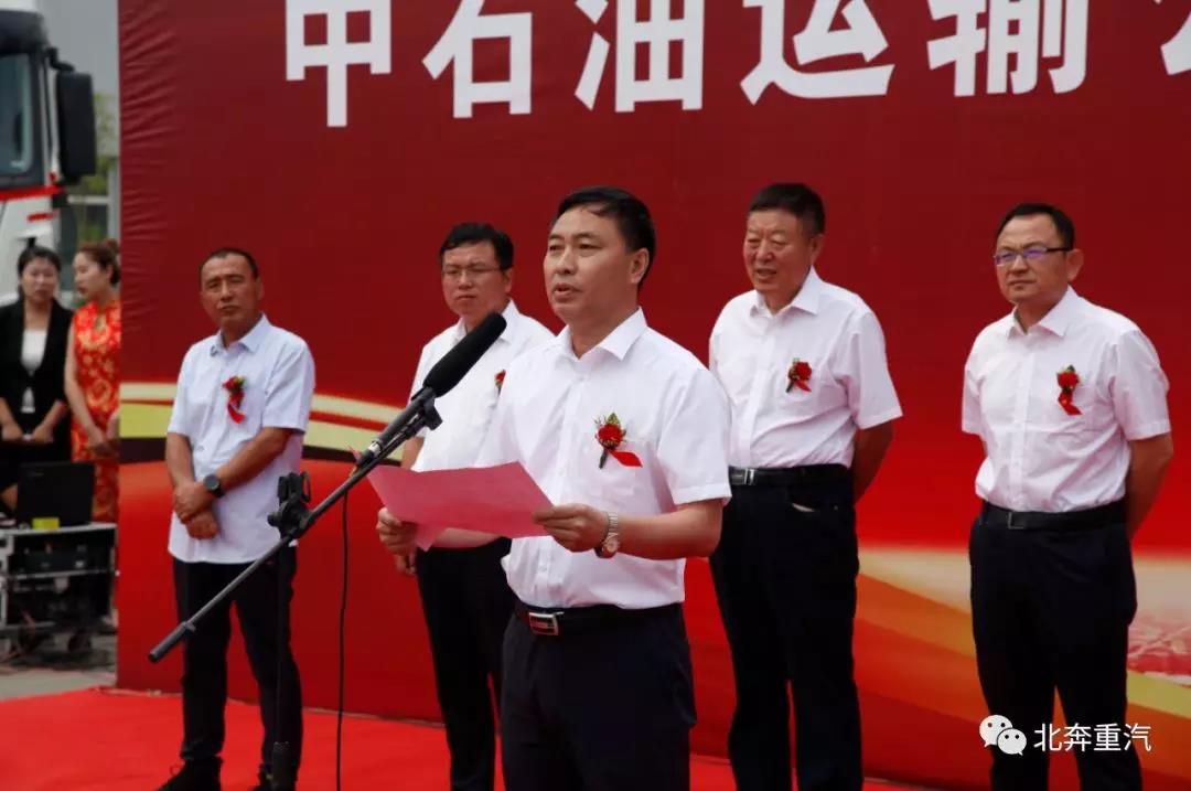 汪宝营在发言中表示,北奔重汽与中国石油内蒙运输公司合作已长达十几年,目前北奔重卡在中国石油运输公司的在用车辆超过3000辆,包括润滑油油品和非油业务的合作量累计超过25个亿,这显示了双方合作的规模,更显现了合作的深度、程度和广度。回顾十几年产品的变化,从8X4单车到V3M经济型运输车,再到V3ET高端运输牵引车,从国二排放到国五排放期间的变化,显示了双方合作共同成长、共同发展,以及共同推动行业的进步。国六实施在即,排放升级会进一步加快、加大安全技术的应用,这次交车仪式意味着北奔重汽将进一步提升和中国石油运输公司的各个方面的合作,主要体现在以下几个方面:第一方面,推进技术领域的合作,北奔重汽将最先进、最高端、与世界接轨的新型产品第一时间介绍给中国石油运输公司,目前累计采购V3ET高端运输牵引车三百余辆;第二方面,服务领域的合作,利用同步全程跟踪服务为车辆的全寿命周期提供有力保障;第三方面,将加大、加深车联网技术领域的应用和推进;第四方面,北奔重汽将扩大双方产业链的合作。最后,汪宝营热烈欢迎中国石油领导的到来,并祝愿发车仪式圆满成功。