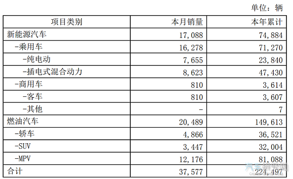 新能源汽车上半年销量为74,884辆,其中乘用车销量为71,270辆,商用车销量为3,614辆。