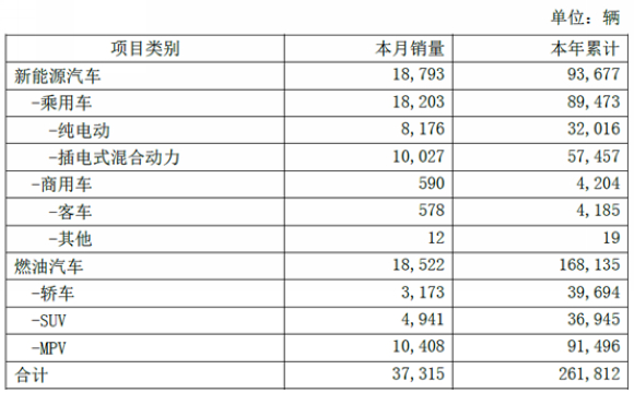燃油汽车上半年销量为149,613辆,其中轿车销量为36,521辆,SUV销量为32,004辆,MPV销量为81,088辆。