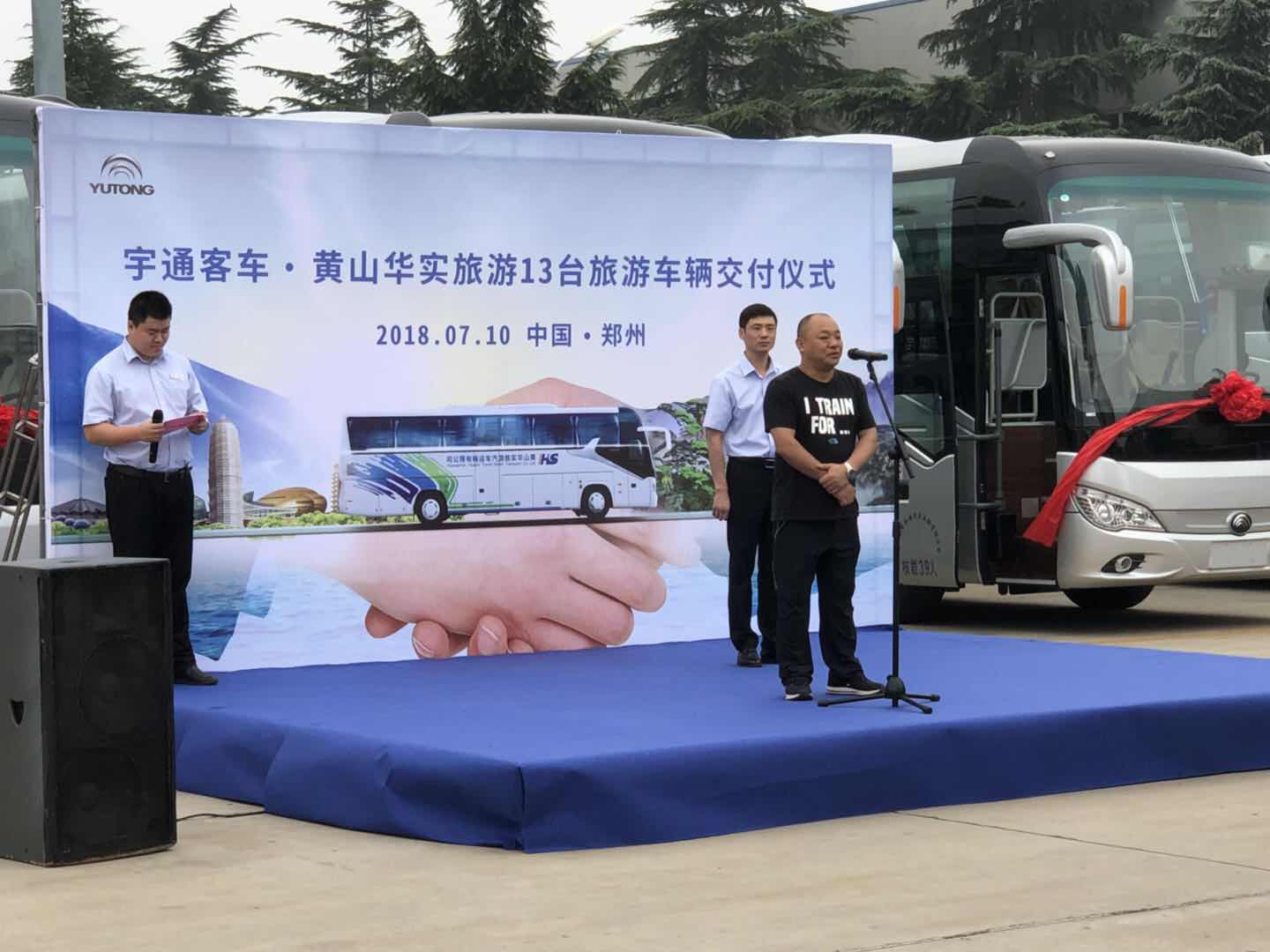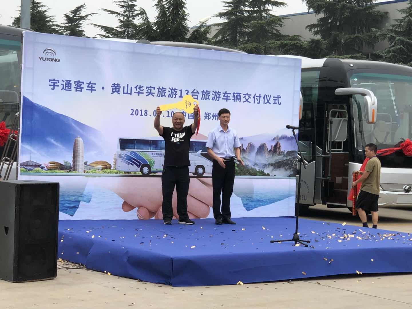 2018年7月10日上午,黄山华实旅游公司宇通客车交车仪式在郑州宇通工业园顺利举行。