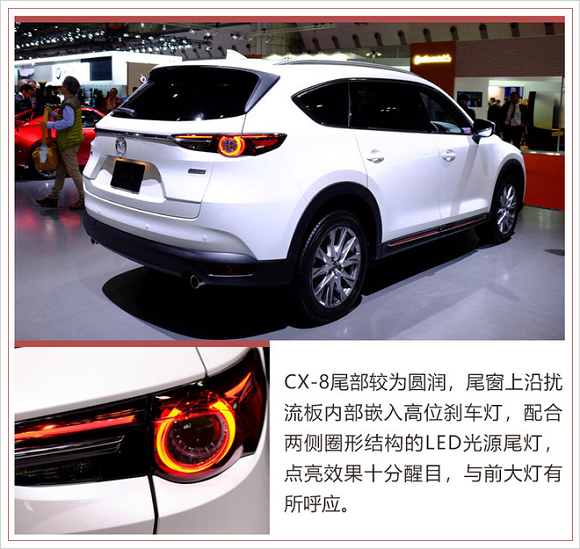 马自达CX-8于2017东京车展期间发布,是一款可提供6座/7座布局的SUV车型。新车已于今年4月正式在华亮相,将于年内由长安马自达投产并销售。网通社从国家工信部获悉,长安马自达CX-8将搭载2.5升自然吸气发动机,提供两驱/全时四驱车型,百公里综合油耗可低至7.9升。