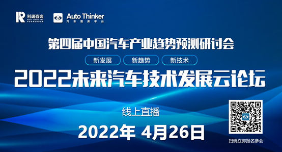 科瑞咨询.智库课堂将于2022年4月26日召开“第四届中国汽车产业趋势预测研讨会暨2022未来汽车技术发展云论坛”。 [详细]