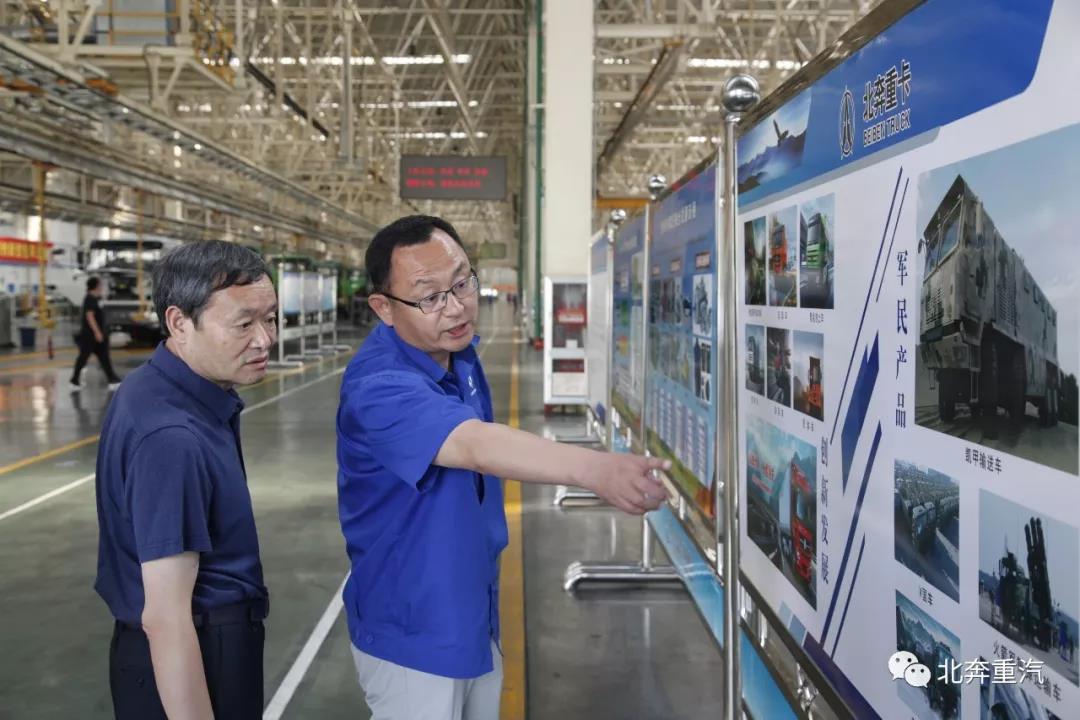 7月9日,人民网总编辑余清楚一行在包头市委常委、宣传部长乌云的陪同下来北奔重汽参观。北奔重汽党委副书记、总经理汪宝营,总经理助理、工会主席高忠贵陪同参观了总装生产线。
