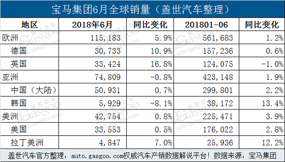 在欧洲,宝马集团上半年共售出561,683辆,同比微增1.2%,是以上三个市场中售出最多的市场。其中,在英国、比利时和奥地利等国家,宝马是最受欢迎的高端品牌。然而,只有英国地区上半年累计销量出现同比下滑,降幅为0.1%。