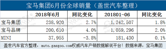 宝马品牌6月销量首超20万辆 MINI品牌较去年6月有所下跌
