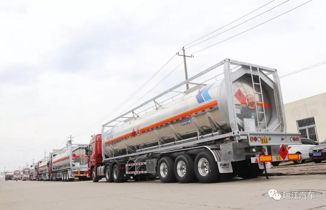 铝合金箱罐车是中集瑞江全力投入研发和制造的匠心精品,是瑞江液罐车家族的卓越代表。铝合金箱罐车助力客户实现更安全、更高效运输,进一步满足当前液态货物多品种,小批量的发展趋势,促进当下多式联运的现代化运输发展。瑞江铝合金箱罐车进入市场以来,获得市场的青睐和客户的广泛欢迎,热度持续高涨。7月14日,来自华东地区的多家危化品生产、运输企业负责人在核心经销商的陪同下莅临中集瑞江,考察瑞江铝合金箱罐车,探讨危化品运输发展,洽谈合作。