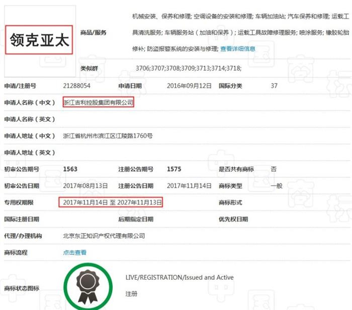 注重亚太市场 吉利注册领克亚太商标