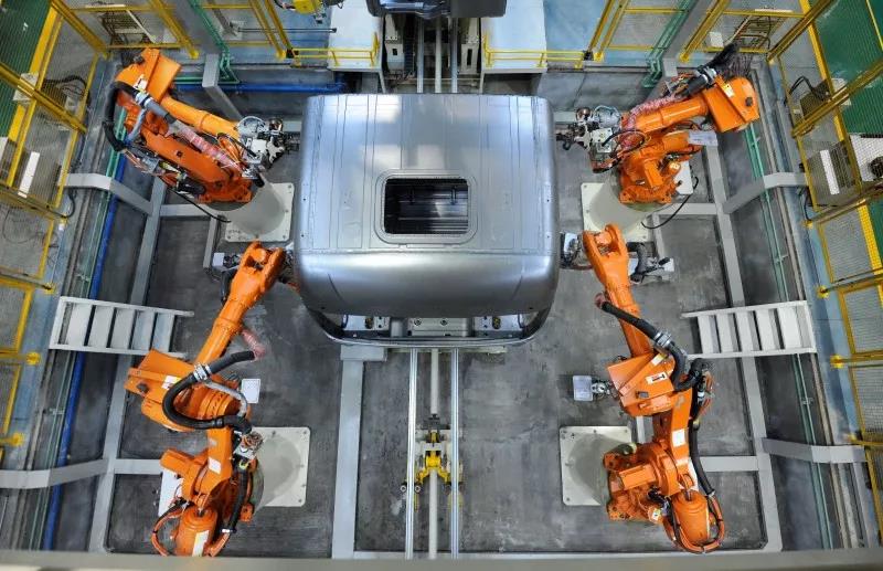 徐工重卡驾驶室智能焊接生产线正在进行焊接