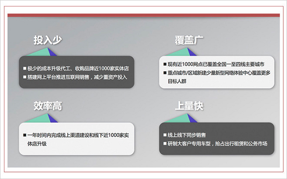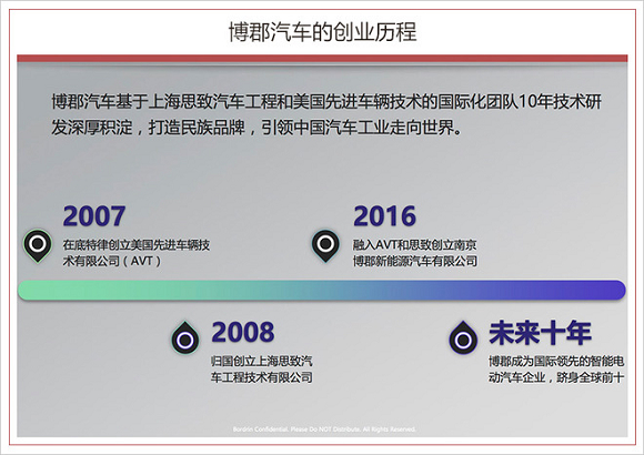 作为一家同时具备传统车企严谨和互联网创新思维的企业,博郡坚持研发、创新两翼齐飞。未来,博郡将打造贯通式、场景化的车联网新生态,并采用线上直销、线下经销、大客户采集的全方位渠道营销模式,以互联网轻资产的方式,提升资金利用效率。