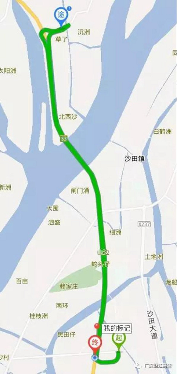 沙田互通→港口大道→X235→洪金路→洪梅互通上高速→南行。