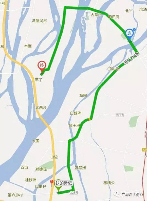 洪梅互通下高速→绕行洪金路→X235→港口大道→沙田。