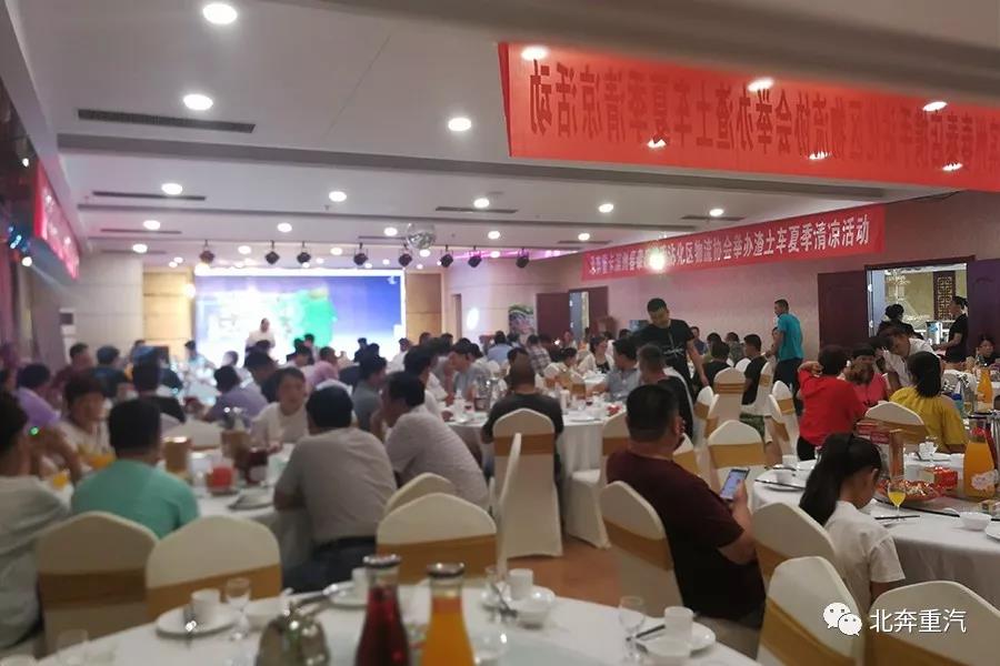 参加此次活动有北奔山东分公司经理王志鹏及全体营销人员、滨州春泰总经理张祚英、沾化区渣土车协会王总、杨秘书长及各大渣土物流公司老板200余人相聚一堂。
