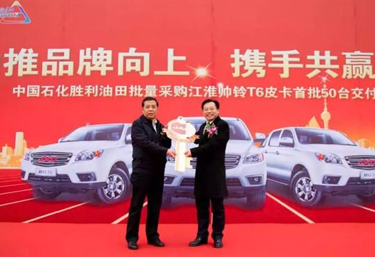2018年12月19日,中国石化胜利油田批量采购50辆江淮帅铃T6皮卡交车仪式在江淮汽车扬州皮卡生产基地圆满完成,50辆帅铃T6皮卡正式交付中石化胜利油田。 [详细]