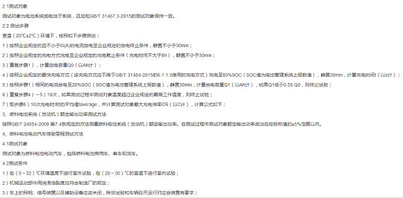 (2)非快充纯电动客车、快充纯电动客车和燃料电池汽车需分别满足“系统能量密度”、“快充倍率”、“燃料电池系统额定功率”和“燃料电池汽车纯电续驶里程”的要求,相关试验方法应按照《动力电池、燃料电池相关技术指标测试方法(试行)》(见附件4)执行;