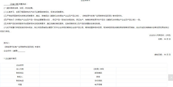 (2)《新能源汽车推广应用推荐车型目录》申请书 (见附件2);