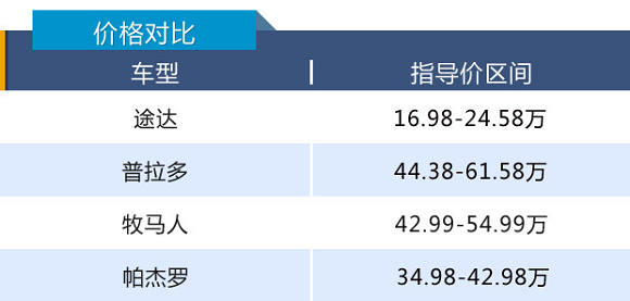 然而途达的到来则完美解决了这个问题,其十分亲民的售价无疑大幅拉近了消费者与硬派越野车之间的距离,这一点从价格对比中就可见一斑。