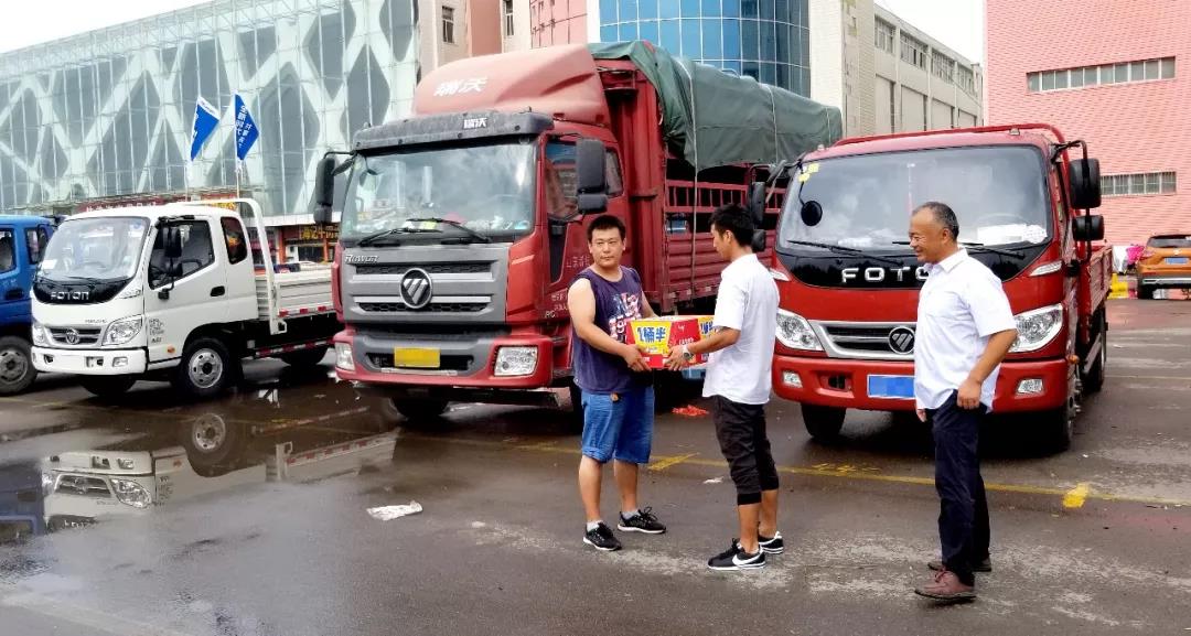 2018年7月28日,天空下着沥沥小雨,但这依然挡不住经销商慰问卡友们的热情。当山东省诸城市的福田时代特许经销商——诸城市富民农机汽车销售有限公司董经理,在车上装满慰问品,准备赶往客户所在地时,又来了几位准备购买福田时代产品的客户,在董经理的细心讲解下,这几位客户很快便达成了购车意向。