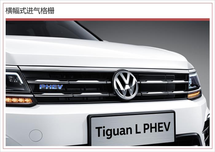 新车外观相比途观L燃油版车型没有太大变化,仅在部分细节有所调整,包括进气格栅带有“PHEV”标识,“C”字形LED日行灯与高尔夫GTE设计相仿。