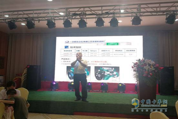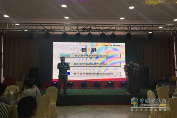 江淮重卡安徽大区经理宋万春对江淮重卡配套奥威的载货产品及优势进行了介绍,从产品设计理念、驾驶室、底盘等方面重点解说了江淮重卡产品的创新、安全、性能及油耗的优化改进,特别强调了强强联合,搭载了强大、可靠、稳定的心脏奥威动力,让产品更加如虎添翼!
