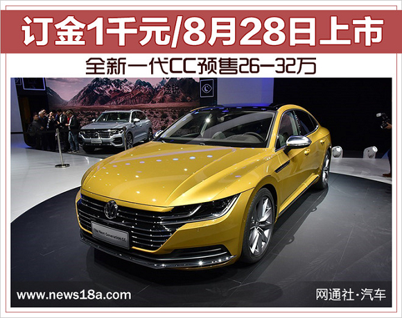 一汽-大众全新一代CC此前已在2018北京车展期间正式发布并与消费者见面。近日,网通社从一汽-大众官方获悉,新车目前已经开启预售,此次预售包含2.0T低功华颜版、2.0T低功魅颜版、2.0T高功魅颜版及2.0T高功曜颜版共四款车型,预售价区间为26-32万元,订金为1千元。全新一代CC将于8月28日正式上市。
