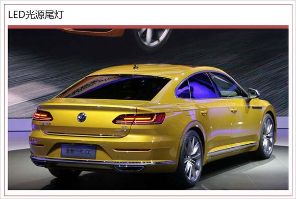 尾部方面,全新一代CC采用了最新设计风格,具有极高的辨识度。另外,新车尾部线条流畅,上翘的尾翼提升了尾部的运动感。此外,该车尾部两侧LED光源后尾灯在夜间点亮后也具有较高的辨识度。