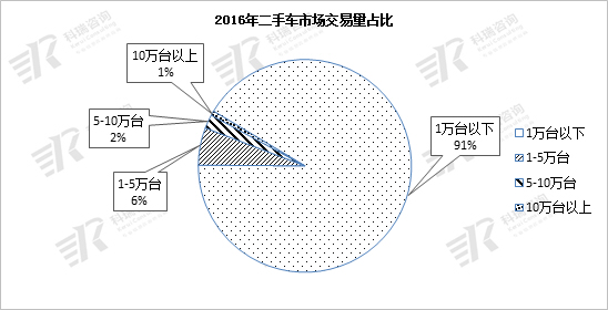 根据商务部2014年对全国二手车交易市场调查结果显示,全国3000平米以上的交易市场供给有1139家。从经营规模上来看,依据中国汽车流通协会“百强市场”统计,2016年交易额超过10万辆的交易市场仅占0.7%,5-10万辆规模的交易市场占2.1%,91.5%的交易市场年交易量不足1万辆。