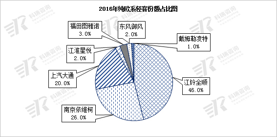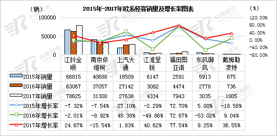 2017年,欧系轻客(含准欧系)除老品牌一南汽依维柯市场严重跌落外,其他全部处于1位或2位数的正增长率。