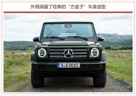 另外,全新G级车的长宽分别增加了53毫米和121毫米(海外数据),也使新车更加凸显经典的方盒子造型,同时也可提升车内空间。奔驰G级上鲜明的机械式门把手和颇具特色的关门声、结实的外部保护条、后门备胎,以及显眼的前部转向指示灯等这些标志性的元素都得到了保留。