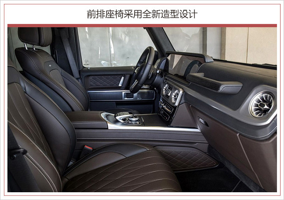 全新一代G级在内饰上也带来了较大的变化,一改此前机械式复古的设计风格。新车采用全新家族设计语言,线条较为平直硬朗造型简洁;中控台配以大量哑光金属材质装饰,提升内饰质感,全新设计的空调出风口造型精美。