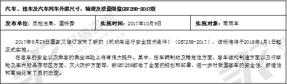在行车安全机制中,国家对客车提出新的技术管理,其主要目的是解决营运客车应急逃生能力不足、内饰材料阻燃性差、防侧翻能力不够等问题,提升营运客车本质安全性能,交通运输部从整车、主要总成、安全防护装置等方面,对运营客车安全性能和结构配置提出了最基本的安全技术等要求。未来市场,在GB7258的新版政策促进下,日后客车市场的产品安全体系还会更加严格,对客户的保障性越来越完善。