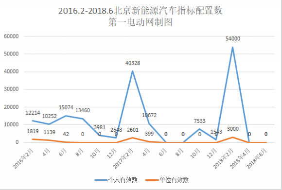 2016年2月-2018年6月北京新能源汽车指标有效数趋势图(单位:个)